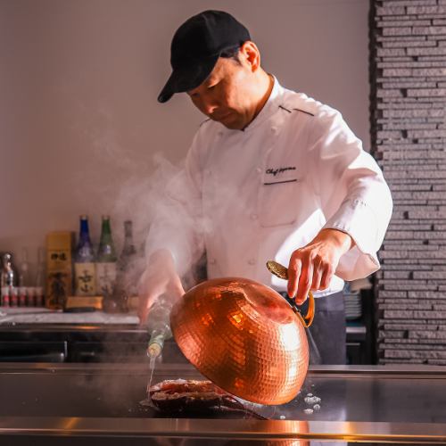 お料理はもちろんのこと、目の前の鉄板焼での料理工程もぜひ楽しんでいってください。
